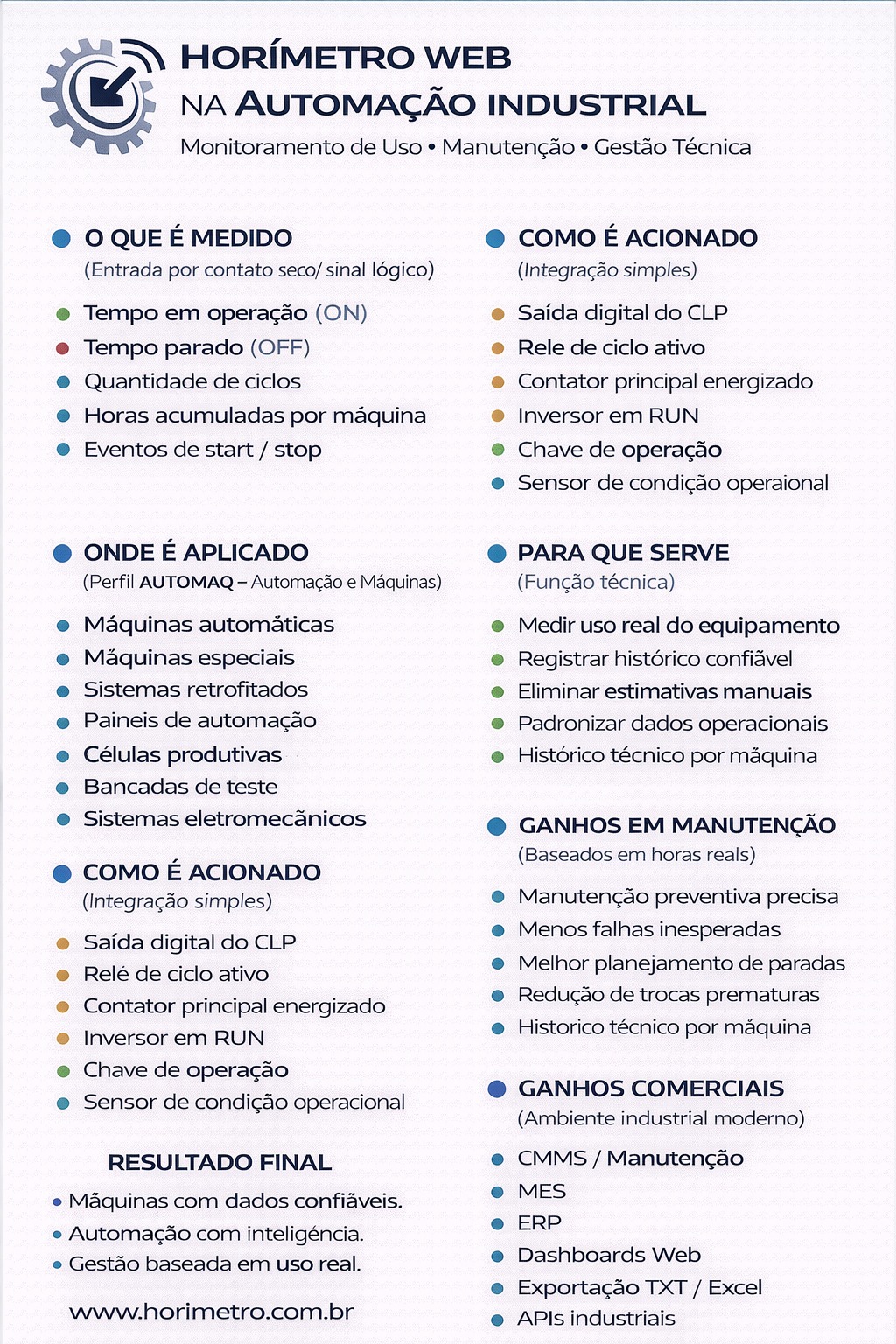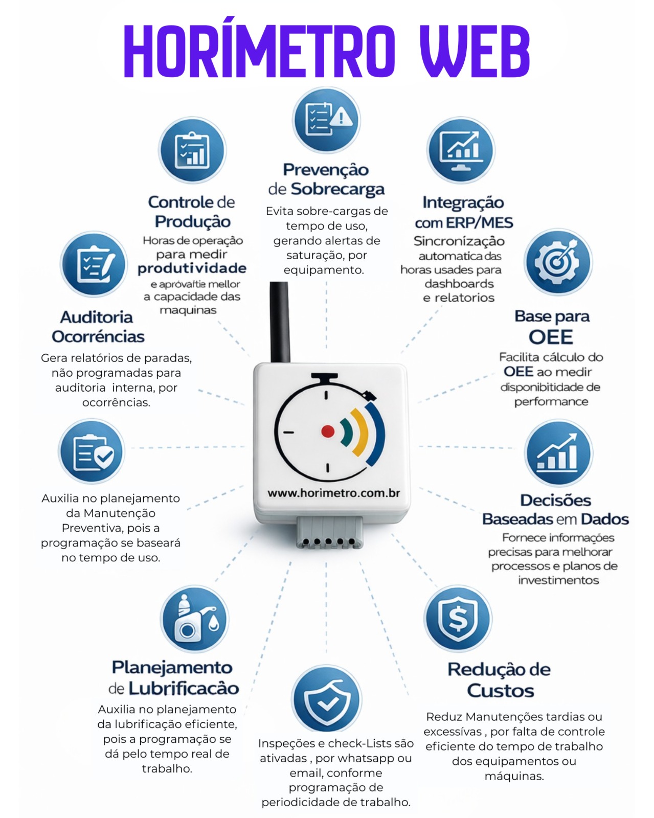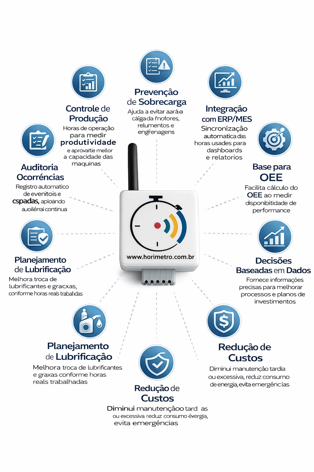 This prevented the evolution of industries worldwide in terms of controlling work times in a modern and effective way, considering that previous hour meters required visual and manual transcription of the registered times and subsequent manual typing of these data into management systems.