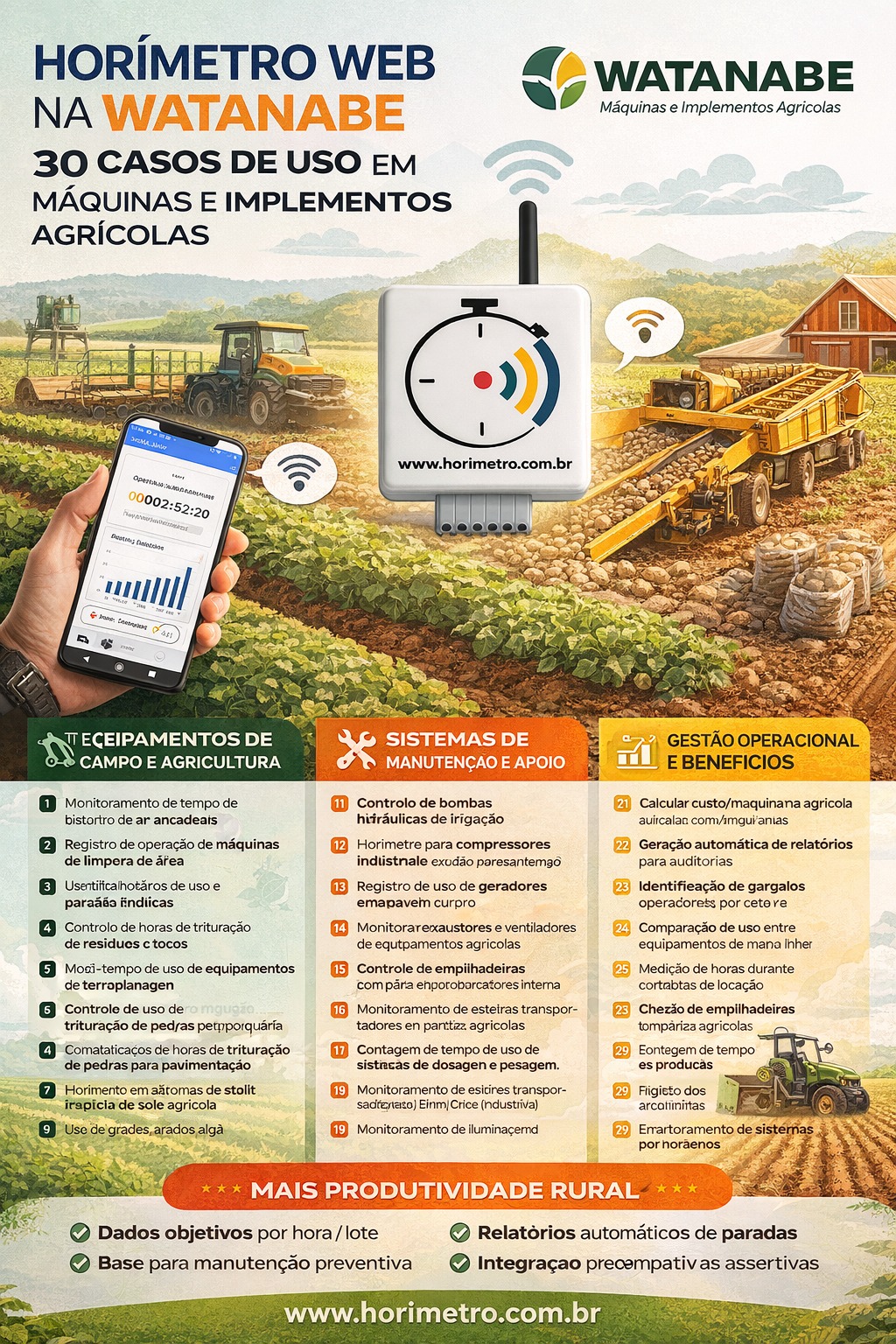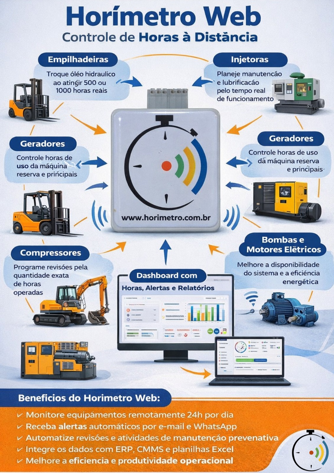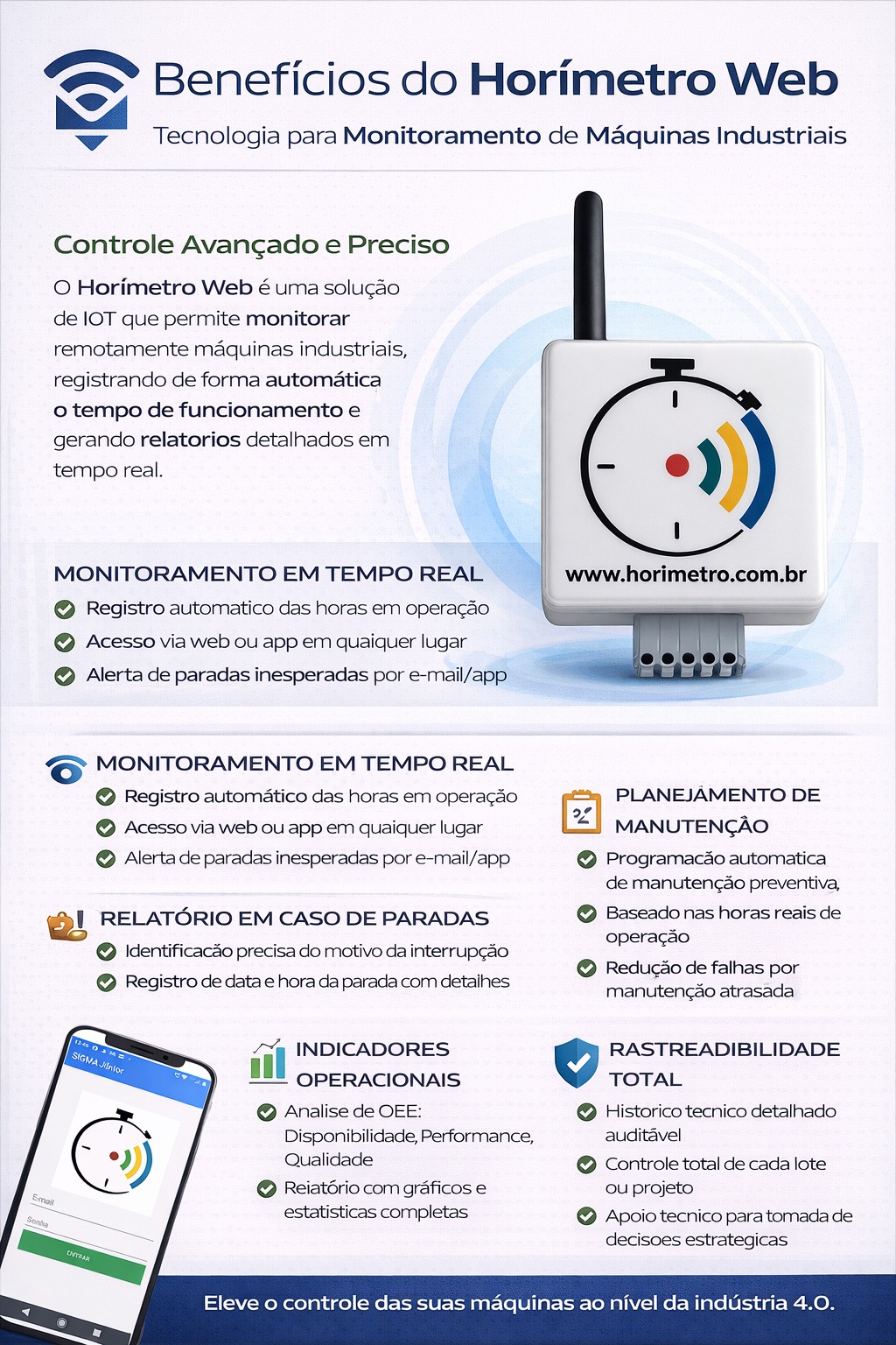 The invention marks and strengthens the fourth industrial revolution underway in the world, being a major leap in the modernization and control of any equipment, even small-scale or 100% mechanical, that needs to use hour meters more efficiently and connected to the internet, giving everyone the possibility to monitor the working times of their machines from anywhere in the world, which until then did not exist.